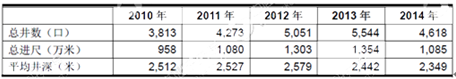 中石化集團2010-2014年鉆井工作量統計數據