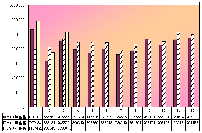 核心提示:2011~2013年我國汽車月度銷售情況一、總體市場概述