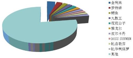 棉毛衫褲:前十位品牌市場綜合占有率合計為37.0%