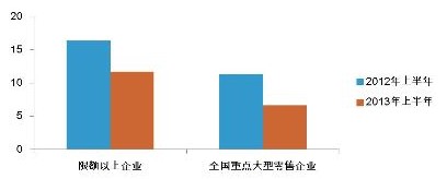 同時,中華全國商業信息中心統計的全國重點大型零售企業2013年上半年服裝類商品零售額同比增長6.6%,較上年同期同樣是低了4.7個百分點。
