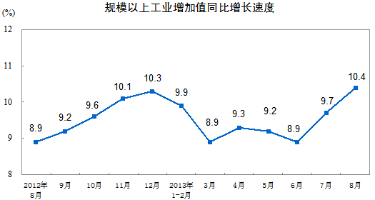 8月份我國(guó)規(guī)模以上工業(yè)增加值同比實(shí)際增長(zhǎng)10.4%
