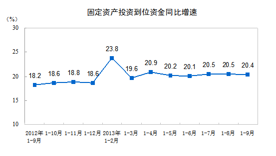 核心提示:2013年1-9月份固定資產(chǎn)投資(不含農(nóng)戶)主要數(shù)據(jù)2013年1-9月份,全國(guó)固定資產(chǎn)投資(不含農(nóng)戶)309208億元,同比名義增長(zhǎng)20.2%(扣除價(jià)格因素實(shí)際增長(zhǎng)20.2%),增速比1-8月份回落0.1個(gè)百分點(diǎn)。從環(huán)比看,9月份固定資產(chǎn)投資(不含農(nóng)戶)增長(zhǎng)1.28%。