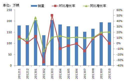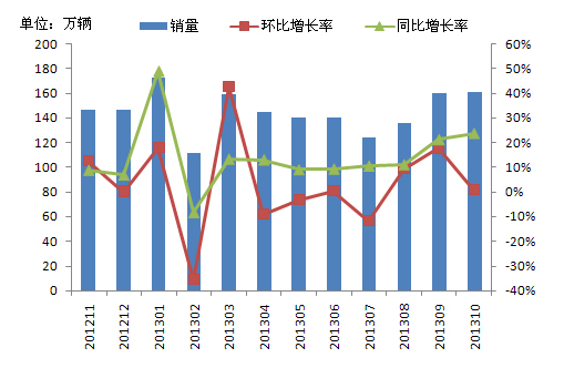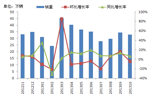 三、2013年10月商用車銷量同比穩定增長 環比銷量下降