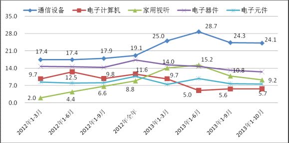 圖1 2012年-2013年10月電子信息制造業增速對比情況