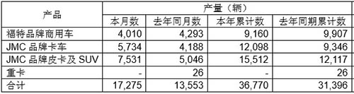 2月,江鈴汽車共生產汽車17275輛,同比增長27.46%;前2月累計生產36770輛,同比增長17.12%;2月,江鈴汽車銷售16756輛,同比增長21.56%,前2月累計銷車38624輛,同比增長25.32%。