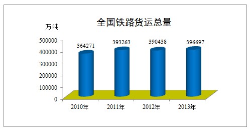 2013年全國鐵路貨物發送量完成39.61億噸