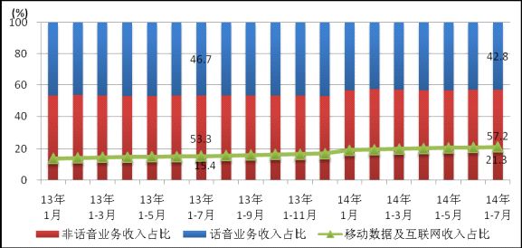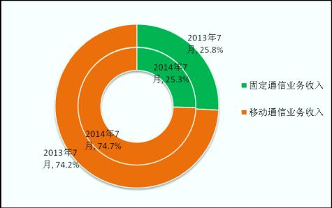 圖9 2014年7月電信主營業(yè)務收入構成(固定和移動)