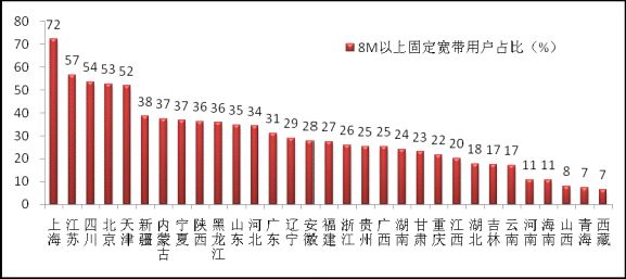 圖11 2014年7月全國各省8M以上固定寬帶用戶占比對比