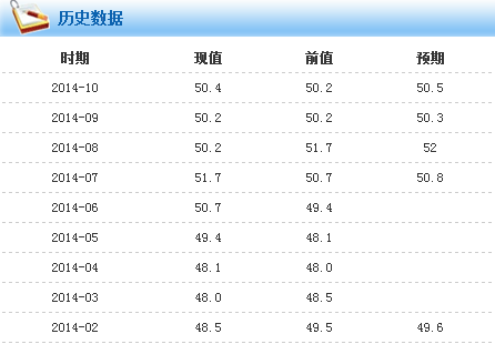 中國10月匯豐制造業PMI初值50.4,創三個月新高,預期50.2,前值50.2。
