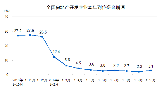 2014年1-10月份全國(guó)房地產(chǎn)開(kāi)發(fā)投資增12.4%
