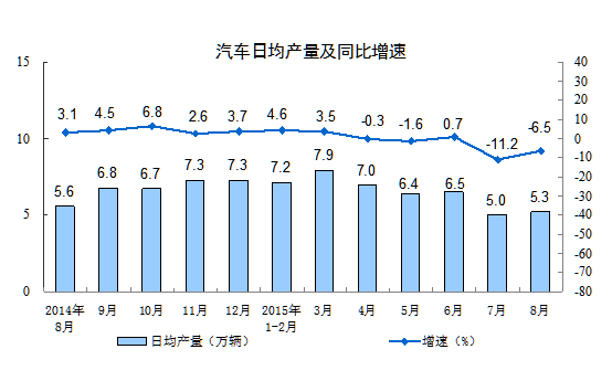 2015年8月中國汽車產量162.8萬輛 同比下降6.5%