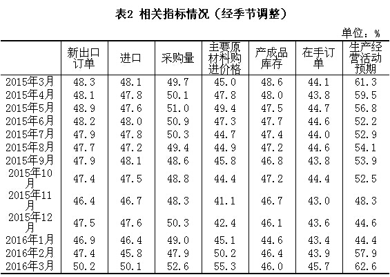 2016年3月份,中國制造業采購經理指數(PMI)為50.2%,比上月上升1.2個百分點,重回擴張區間。