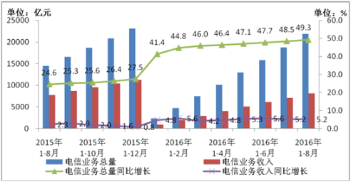 2016年1-8月中國通信行業(yè)運營狀況分析