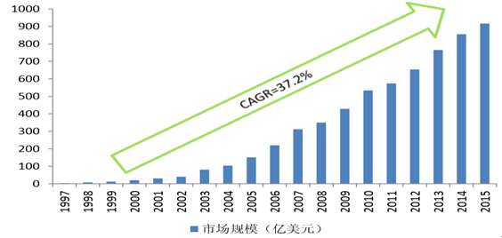 1997-2015 年全球單抗產(chǎn)業(yè)市場(chǎng)規(guī)模