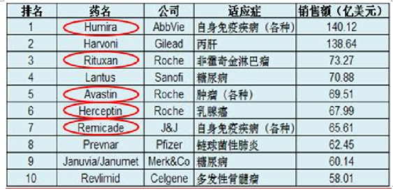 單抗占據(jù) 2015 年全球最暢銷(xiāo)藥物榜單前 10 名中的 5 個(gè)