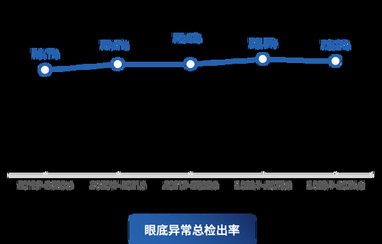 在超500萬人次的人工智能視網膜健康評估結果中,整體異常檢出率為77.4%。從歷年結果對比分析數據顯示,整體眼底異常檢出率仍處于上升趨勢,2023-2024年眼底異常總檢出率超過78%。