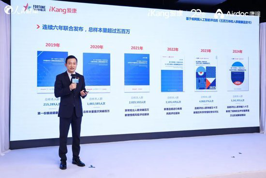這是自2019年起,愛康集團與鷹瞳科技連續六年發布基于視網膜人工智能評估的《體檢人群健康藍皮書》。尤為值得一提的是,今年的《藍皮書》總計樣本數據突破500萬大關,持續參與人工智能視網膜健康評估的人群更是首次超過80萬,為觀測我國體檢人群眼健康的狀況、健康風險分布態勢,以及公眾對于健康管理防控的意識,提供了一個真實且具有參考價值的“觀測窗口”。