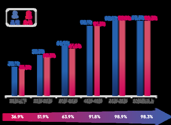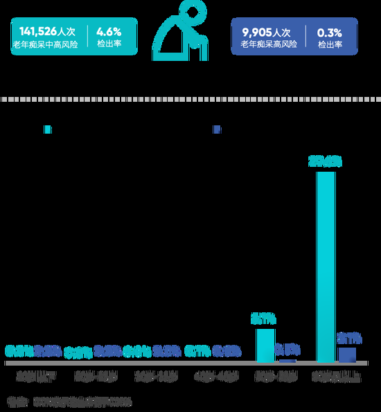 視網膜老年癡呆風險指數是鷹瞳科技基于國際公認的CAIDE癡呆風險評估模型③,通過人工智能學習,研發的用于評估20年內發生老年癡呆風險的評估方法和工具。《藍皮書》數據顯示,老年癡呆的中高風險和高風險集中在50歲及以上,并在60歲以后出現井噴式增長,《藍皮書》提示較大年齡段的人群應該定期進行人工智能老年癡呆風險評估,合理安排生活習慣,警惕老年癡呆的發生。