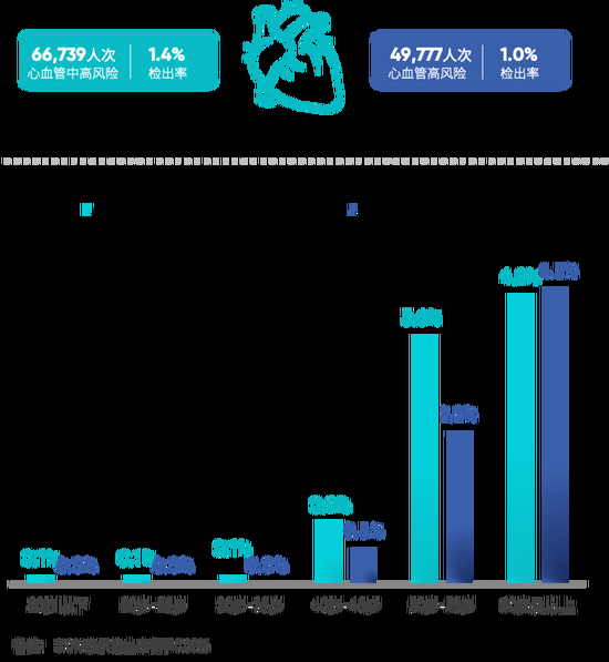 《藍皮書》數據表明,人工智能預測的心腦血管風險隨年齡增大而增加,在40歲時出現跳躍性增長,提示心血管和腦血管風險發生顯著改變,建議40歲及以上人群每一年至少進行一次健康檢查,以便能夠及時發現心腦血管的健康隱患。