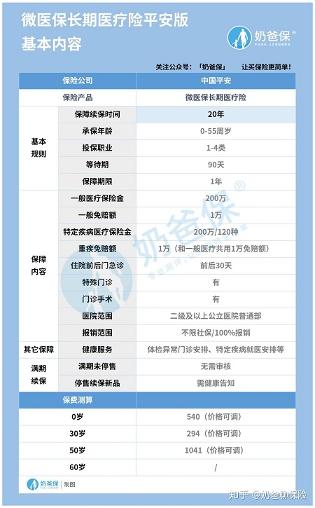 那么微醫(yī)保長(zhǎng)期醫(yī)療險(xiǎn)平安版都有什么保障內(nèi)容?保證20年續(xù)保真的好嗎?看看奶爸以下的分析吧。