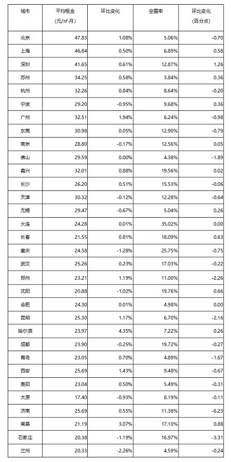 表:全國32個城市平均租金和空置率一覽表