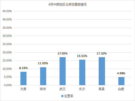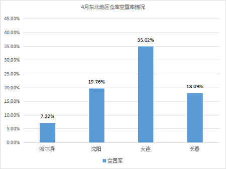 倉庫空置率較高的城市為大連、重慶,均高于25%。相較3月,兩個城市倉庫空置率相對穩定,波動不大。