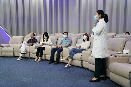 中心院長向各位領導們詳細解說未來再生醫學中心服務平臺,整體醫學健康管理體系及全周期健康項目體系、定制化健康管理服務。