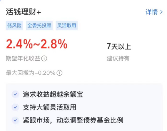 對于普通投資者來說,需關(guān)注央行逆回購時對投資理財所帶來的影響,及時抓住投資機會,獲取回報。央行本次操作,利好短債和以貨幣基金為底層的產(chǎn)品,投資者可多關(guān)注如“支付寶幫你投”推出的“活錢理財+”等類似產(chǎn)品,“活錢理財+”采用債券基金和貨幣基金組合,追求收益超余額寶,該策略優(yōu)勢在于貨幣基金部分支持快速轉(zhuǎn)出,取用靈活。