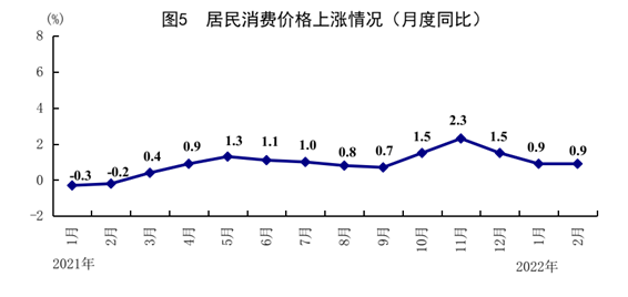 1—2月份,全國居民消費價格(CPI)同比上漲0.9%。分類別看,食品煙酒價格同比下降1.8%,衣著價格上漲0.5%,居住價格上漲1.4%,生活用品及服務價格上漲0.5%,交通通信價格上漲5.4%,教育文化娛樂價格上漲2.7%,醫療保健價格上漲0.6%,其他用品及服務價格上漲0.1%。在食品煙酒價格中,豬肉價格同比下降42.0%,糧食價格上漲1.5%,鮮果價格上漲8.2%,鮮菜價格下降2.1%。扣除食品和能源價格后的核心CPI同比上漲1.2%。分月看,1、2月份全國居民消費價格同比均上漲0.9%,環比分別上漲0.4%和0.6%。