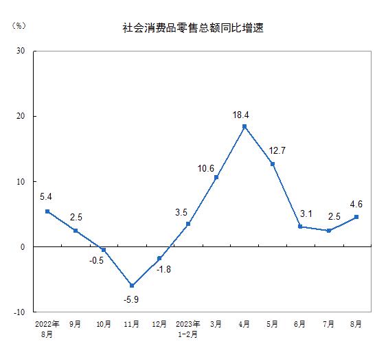 核心提示:8月份,社會消費品零售總額37933億元,同比增長4.6%。其中,除汽車以外的消費品零售額33820億元,增長5.1%。 1—8月份,社會消費品零售總額302281億元,8月份,社會消費品零售總額37933億元,同比增長4.6%。其中,除汽車以外的消費品零售額33820億元,增長5.1%。