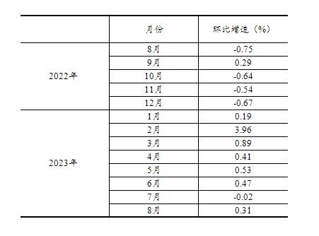 根據(jù)季節(jié)調(diào)整模型自動修正的結(jié)果,對2022年8月份以來的社會消費品零售總額環(huán)比增速進行修訂。修訂結(jié)果及2023年8月份環(huán)比數(shù)據(jù)如下: