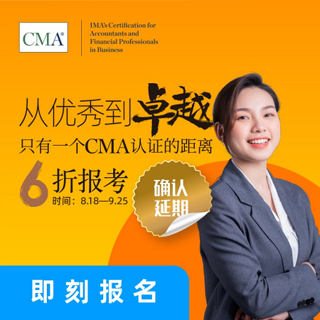 為幫助財務專業人士學習管理會計知識,提升職場競爭力和拓展職業人脈。本次“從優秀到卓越,只有一個CMA認證的距離”的6折優惠活動的截止日期將延期至9月25日。