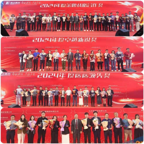 合作共贏,是企業發展的市場準則。深圳市南北醫藥集團有限公司董事長張彪先生、總裁劉奕成先生、研發制造中心總經理顏宇先生行政人力資源中心總經理劉坤先生、拓展監管服務中心全子漢先生為華潤三九醫藥股份有限公司、石藥控股集團有限公司、廣州醫藥股份有限公司大眾藥品銷售分公司、華潤江中制藥集團有限責任公司、廣東樂康藥業有限公司等一大批優秀供應商頒發至尊戰略獎、遙遙領先獎、卓越新銳獎、金牌戰略合作獎,肯定了優秀工業企業在南北醫藥集團發展中起到重要作用,以及對他們過去一年辛勤付出與卓越貢獻的肯定,更是對未來能夠繼續引領行業創新、推動醫藥行業高質量發展的深切期待。
