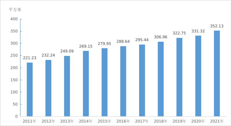 圖3:2011-2021年全國平均每萬人群眾文化設施建筑面積