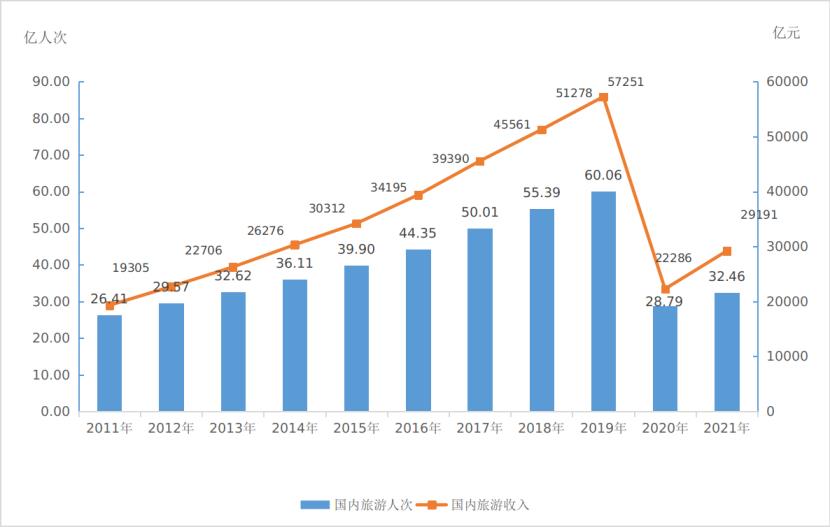 圖4:2011-2021年國內(nèi)旅游發(fā)展情況