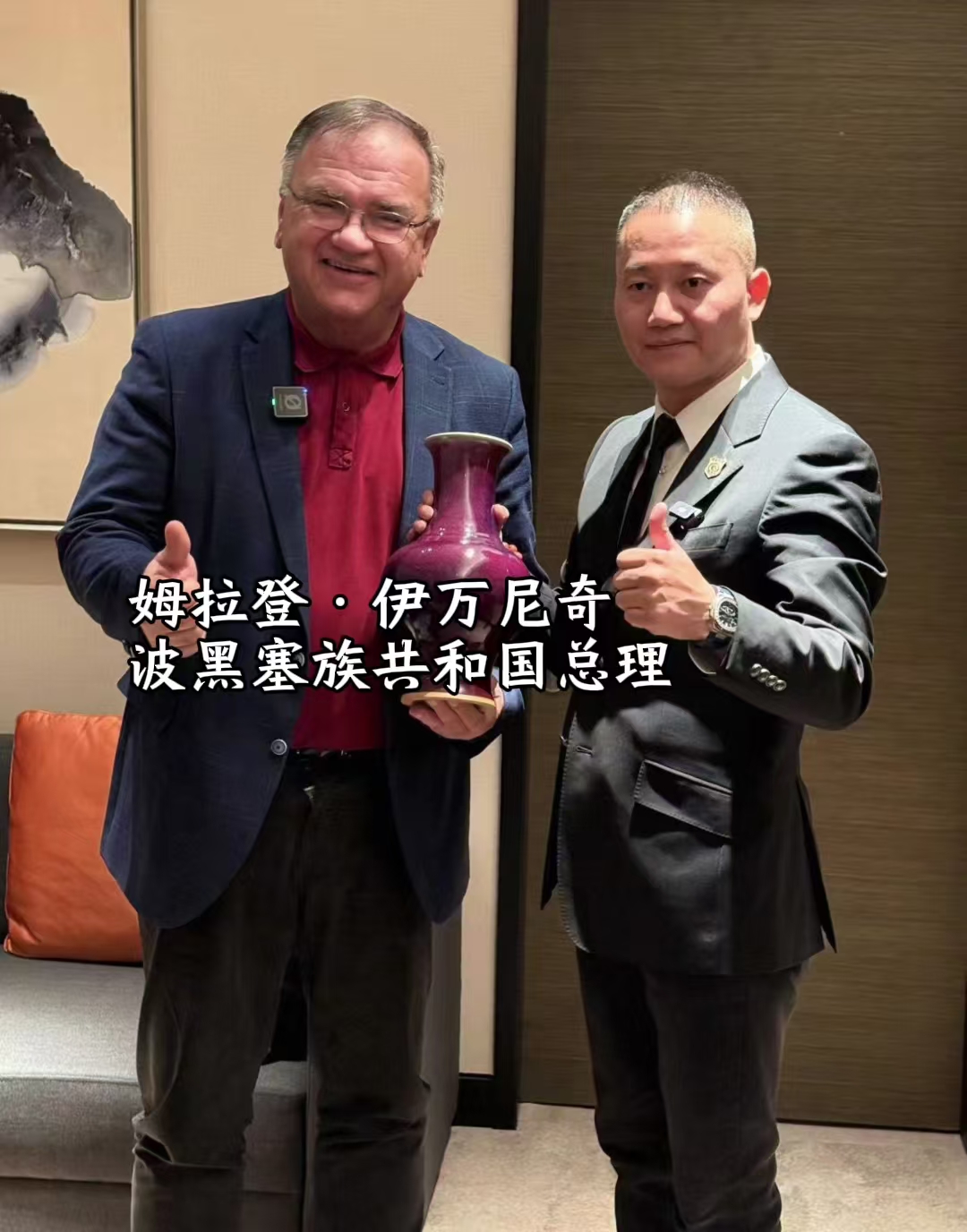 鈞瓷,作為中國五大名瓷之一,是中國的國禮之一,其獨特的窯變藝術令人嘆為觀止。釋行風董事長特意將國家級非物質文化遺產鈞瓷傳承人苗長強精品鈞瓷贈予克羅地亞共和國前總統伊沃·約西波維奇、皮黑塞族共和國前總理姆拉登·伊萬尼奇等各國元首。這一舉動不僅展示了中國陶瓷藝術的精湛技藝,更讓外國友人領略到了中華文化的博大精深。
