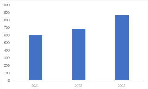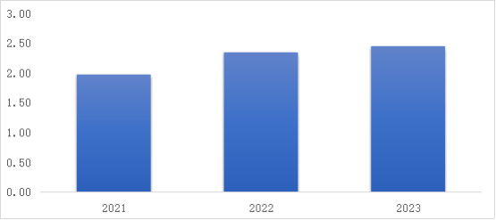圖表 9 2021-2023年全球藻源蝦青素產量(單位:噸)
