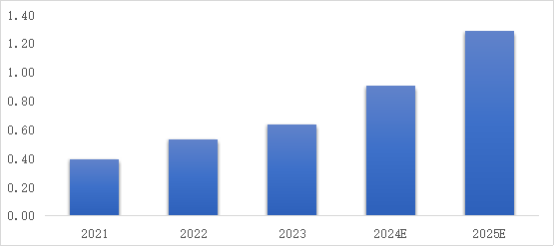 圖表 12 2021-2025年中國藻源蝦青素市場規模(單位:億元)