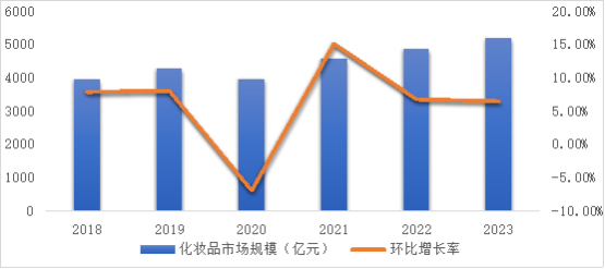 圖表 13 2018-2023年中國化妝品市場規模及增長情況