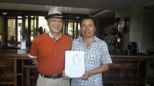 原中國美協付主席班禪畫師尼瑪澤仁和楊樹龍在紅寺堡酒莊參加活動
