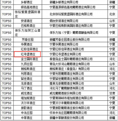 紅寺堡酒莊入選胡潤中國葡萄酒酒莊50強