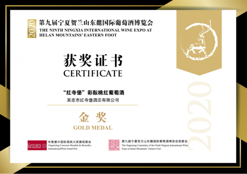 2020第九屆賀蘭山東麓葡萄酒博覽會金獎-(紅寺堡彩醞桃紅葡萄酒)