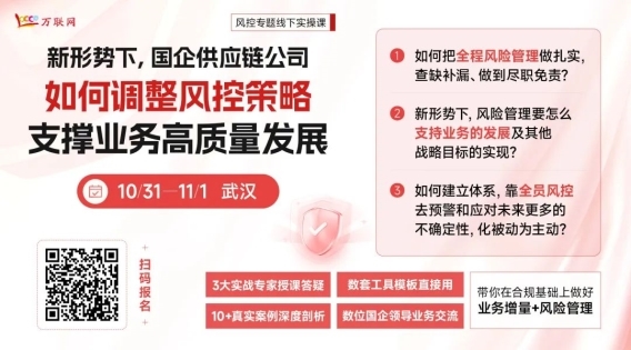 10月31日-11月1日,我們將聯(lián)合資深產(chǎn)業(yè)互聯(lián)網(wǎng)專家黃貴生老師、全面風(fēng)險(xiǎn)管理專家張洪江老師、供應(yīng)鏈風(fēng)控實(shí)戰(zhàn)專家張春艷老師,在武漢舉辦“新形勢(shì)下,國(guó)企供應(yīng)鏈公司如何調(diào)整風(fēng)控策略支撐業(yè)務(wù)高質(zhì)發(fā)展”實(shí)操課。