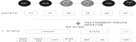 簡(jiǎn)單來講就是產(chǎn)品從大宗商品轉(zhuǎn)向“大宗商品-工業(yè)品”鏈群,圍繞地方產(chǎn)業(yè)集群打造生產(chǎn)性互聯(lián)網(wǎng)服務(wù)平臺(tái)!
