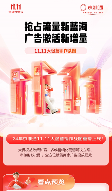 核心提示:京東11.11正在火熱進行中,商家如何在競爭激烈的大促中脫穎而出?今年京東持續加大市場投入,帶來千億新增流量,速戳下圖查看京準通11.11大促營銷作戰圖,獲取高效投放密鑰,實現生意確定增長!京東11.11正在火熱進行中,商家如何在競爭激烈的大促中脫穎而出?今年京東持續加大市場投入,帶來千億新增流量,速戳下圖查看京準通11.11大促營銷作戰圖,獲取高效投放密鑰,實現生意確定增長!.png)