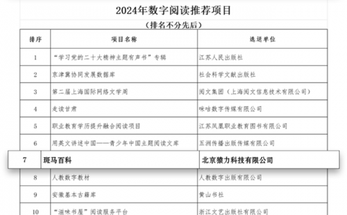 (斑馬百科入選中國音像與數字出版協會“2024年數字閱讀推薦項目”)