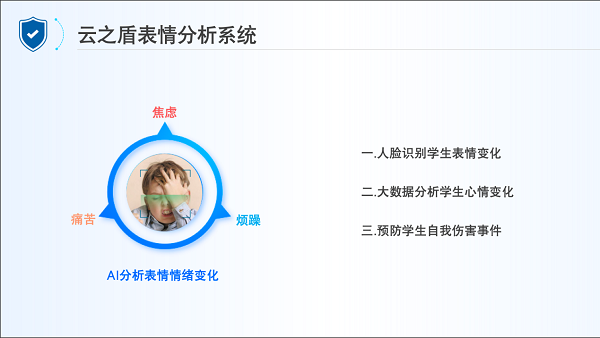 聚焦提高校園安全水平實際需求,云之盾探索利用人工智能、大數據、云計算等新技術手段,深度融合人防、物防、技防、智防建設,全力打造內外結合、整體防控、科技助力的校園安全防控系統“云之盾AI預警系統”。“云之盾AI預警系統”由“敏感人員預警系統”、“校園霸凌行為監測系統”以及“中小學生情緒感知干預系統 ”三大系統構成,分別從外部風險防控、內部實時監測以及心理分析干預這三個層面來構建與之對應的針對性舉措,從而構建起一套完整全面的校園安全智能防控體系,以此大力推進校園安防規范化、標準化、智能化建設,全面提升校園安防能力水平,推動傳統校園安防智能化轉型。