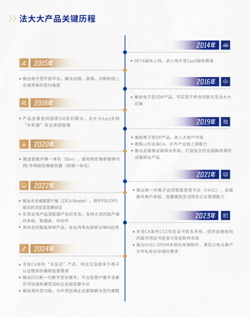 組織度過了起步期和混沌期,產(chǎn)品的能力也在這兩個時間不斷進步,擁有了簽約、認證、合同全生命周期管理和AI能力,場景也從早期的“交易在線”,擴展到中大型企業(yè)以及政務市場,不斷豐富的場景背后,法大大的商業(yè)想象力也不斷放大。法大大也從提供單一工具性產(chǎn)品,拓展為“擬審簽管存”一體的協(xié)作平臺;從最初的電子簽名服務提供者,成為如今的數(shù)字化契約基礎設施構建者,不僅贏得了市場的認可,還推動了相關法律法規(guī)的逐步完善,強化了市場對電子簽名技術的信任。