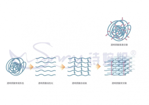 詩婉妮®「速潤瓶」采用先進的雙重微交聯技術,打造出獨特的水立方鎖水網結構。這種結構可在肌膚表面形成一層保護膜,迅速鎖住水分,防止流失。與傳統的單分子透明質酸相比,雙交聯透明質酸的三維立體網狀結構更有效地捕捉并鎖住水分,實現肌膚的“快速”補水。