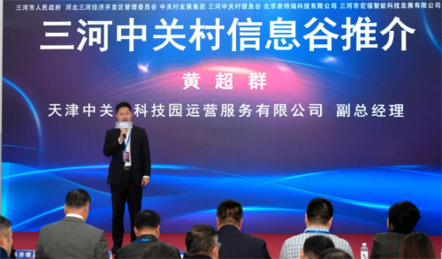天津中關村科技園運營服務有限公司副總經理黃超群從園區背景、主導產業、載體形態、入園政策、創新環境對三河中關村信息谷進行了具體推介。他表示,三河中關村信息谷的落地運營是進一步落實京津冀協同發展重大國家戰略的具體舉措,園區將加大承接高新技術企業轉移和重大科技成果轉化力度,進一步提升創新營商環境,在實現高質量發展道路上邁出堅實的步伐。